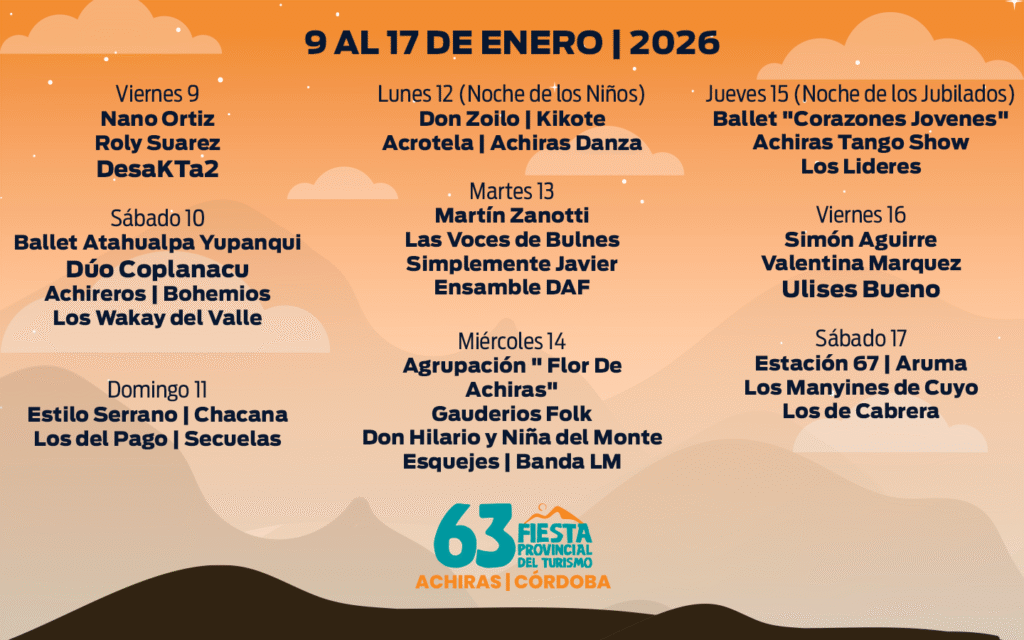 La Municipalidad de Achiras informa a la comunidad que se encuentra en plenos preparativos para recibir la 63ª edición de la tradicional Fiesta del Turismo. Este evento, que es un pilar fundamental en el calendario de la región, celebra la identidad de nuestra localidad y reafirma nuestro compromiso como «La Linda del Sur Cordobés».
